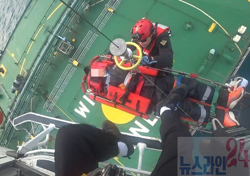 서해지방해양경찰청은 여수항공대 헬기(팬더, B513)를 현장으로 급파하고현장에 도착함과 동시에 항공구조사와 응급구조사가 석유제품운반선 상공에서 직접 호이스트를 이용 하강하여응급환자 처치 후 인양, 119 구급대가 대기하고 있는 여수공항으로 긴급 이송하였다.