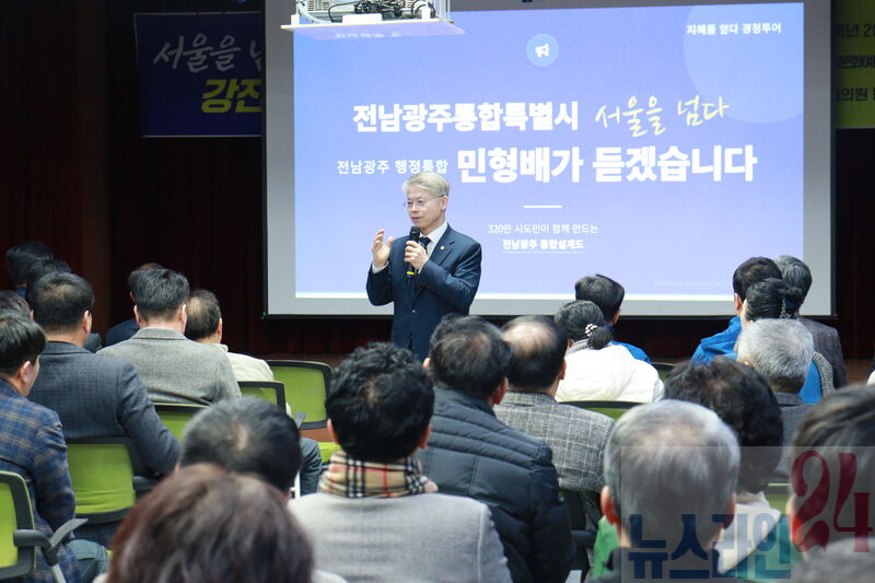 전남 · 광주 통합특별시장 출마를 선언한 민형배 국회의원 ( 광주 광산을 ) 은 지난 20 일 장흥 · 강진에서 경청투어를 성황리에 개최했다고 21 일 밝혔다.