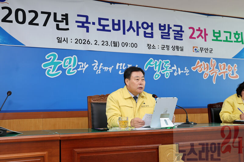 국·도비사업 발굴 보고회무안군(군수 김산)은 23일 간부공무원들이 참석한 가운데 2027년도 국·도비 지원 건의사업 발굴 보고회를 개최했다고 밝혔다.