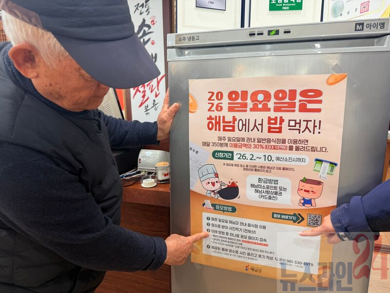 한편 해남군은 이번 사업의 성공적인 안착을 위해 관내 일요일 영업 음식점 업주들의 적극적인 협조를 요청했다.