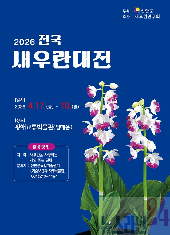 신안군은 국내 최대 규모의 새우난초 전시·경연 행사인 ‘2026 전국새우란대전’을 4월에 개최하며, 전국의 새우난초 재배 농가, 애호가, 단체를 대상으로 출품 참가자를 모집한다.