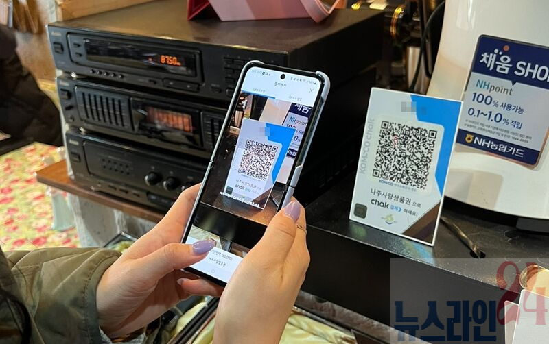 나주시 출산육아지원금과 출생기본소득은 모바일 나주사랑상품권으로 지원한다. 사진은 모바일 나주사랑상품권 이용 모습