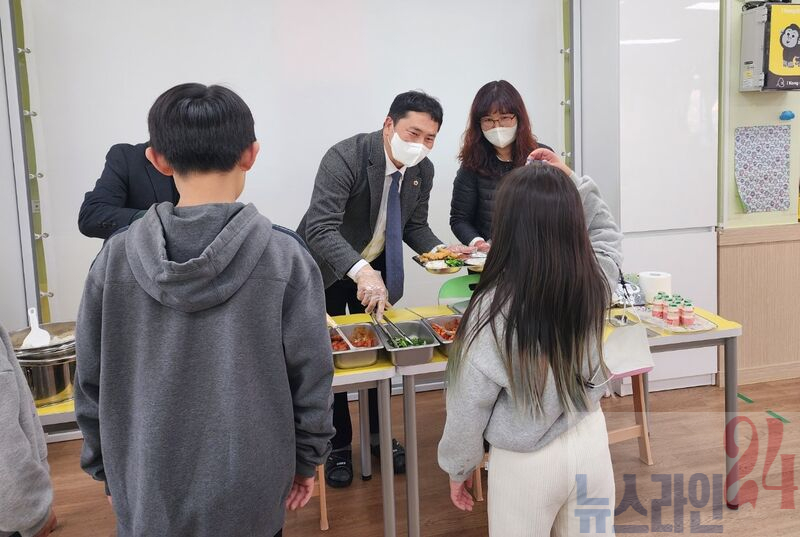 임형석 의원은 각 초등학교를 찾아 교장실에서 전남도교육청, 광양교육지원청, 늘봄학교 관계자 등과 간담하고 늘봄교실로 이동해 시설 현황을 살폈다. 용강초등학교에서는 학생들에게 중식으로 제공하는 행복도시락을 배식했다.