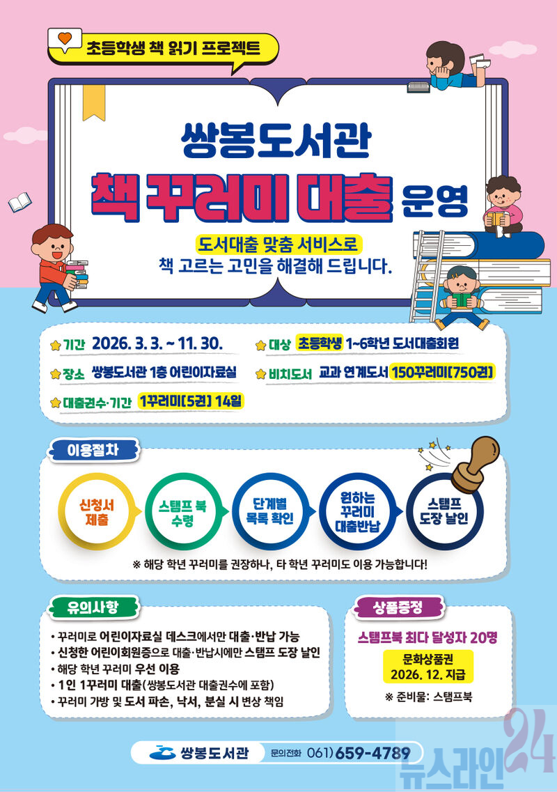 여수시립쌍봉도서관은 3월부터 초등학생을 대상으로 ‘책 꾸러미 대출’ 프로젝트를 시작한다.