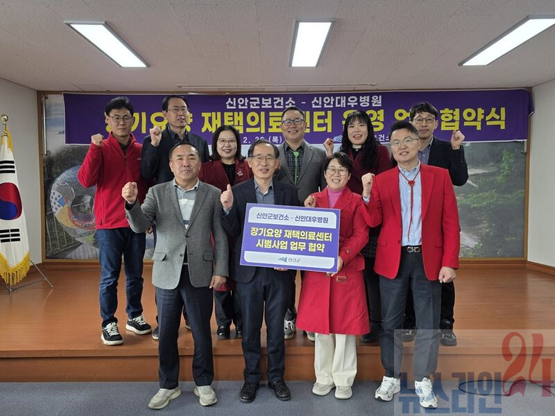 신안군보건소-신안대우병원은 ‘장기요양 재택의료센터 시범사업’ 업무협약을 체결했다 신안군은 2월 26일 비금면사무소에서 신안대우병원(원장 최명석)과 ‘장기요양 재택의료센터 시범사업’ 추진을 위한 업무협약을 체결했다고 밝혔다.