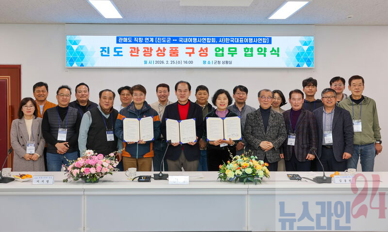 진도군은 지난 25일에 진도군청에서 국내여행사연합회, 한국대표여행사연합과 함께 ‘관매도 직항 연계 진도 관광상품 구성’을 위한 업무협약(MOU)을 체결했다.