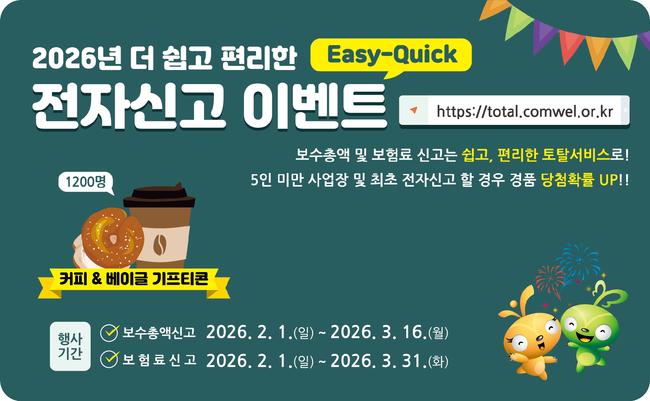법정 기한 내 전자신고를 완료하면 고용·산재보험료를 최대 1만 원까지 경감받을 수 있다. 또한 추첨을 통해 커피·베이글 기프티콘을 제공하는 이벤트도 진행된다.