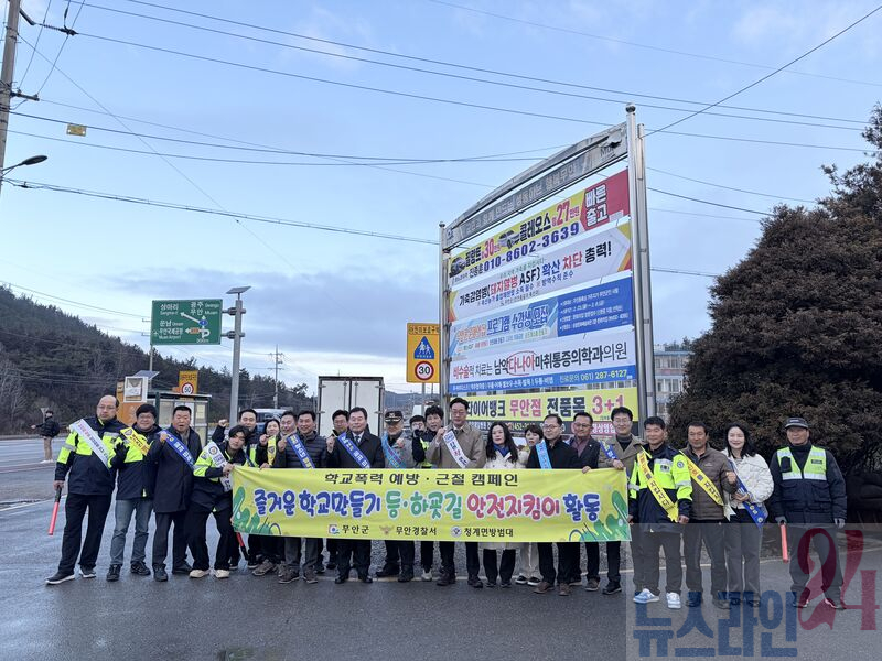 학교폭력 예방 캠페인무안군 청계자율방범대는 3일 학생들의 안전한 학교생활을 지원하기 위해 학교폭력 예방 캠페인을 실시했다고 밝혔다.