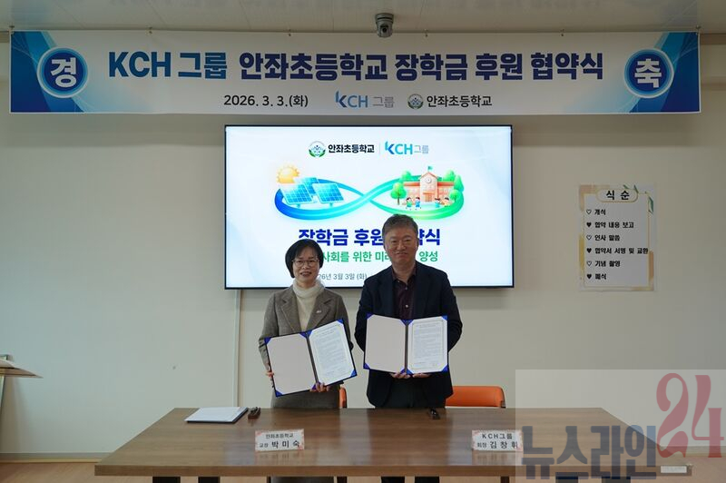 3월 3일 안좌초·중·고등학교 2026학년도 입학식에서 KCH그룹(회장 김창휘)은 신입생들을 대상으로 장학금을 전달하고, 안좌초등학교와 장학금 후원 협약을 체결했다.