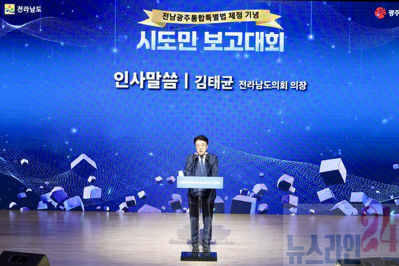 김태균 도의장 통합 전남․광주가 “국가균형발전 중심축”「전남광주통합특별시 설치를 위한 특별법」이 지난 3월 1일 국회 본회의를 통과함에 따라, 이를 기념하고 향후 비전을 공유하는 시도민 보고대회가 3일 한국에너지공과대학교 대강당에서 개최됐다.