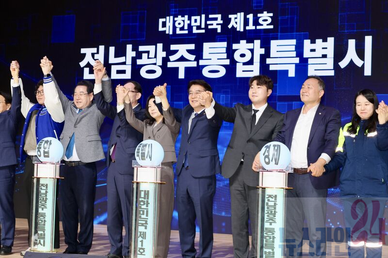이날 행사에는 전남도의장, 전남도지사, 광주시장, 국회의원, 광주시 부의장 등 주요 인사와 시도민 500여 명이 참석해 전남·광주 행정통합의 역사적 의미를 함께 나눴다.