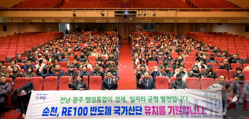 한편, 안전사고 예방교육에서는 미래 경쟁력과 지속 가능한 성장 기반을 위한 순천시 RE100 반도체 국가산단 유치 및 전남․광주 행정통합을 기원하는 퍼포먼스도 진행됐다.