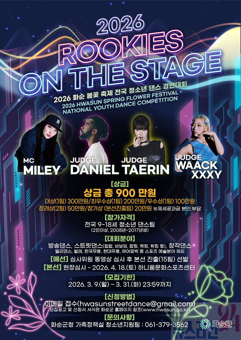 화순군(군수 구복규)은 ‘2026 화순 봄꽃 축제’를 맞아 전국 청소년들의 끼와 열정을 담아낼 ‘제3회 전국 청소년 댄스 경연대회’를 개최하고 참가자를 모집한다고 10일 밝혔다.