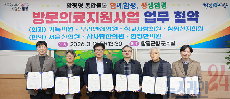 협약에 따라 함평군은 서비스 대상자 발굴 및 연계를 총괄 지원하며, 협약의료기관의 의사와 함평군의 간호사·사회복지사가 팀을 이뤄 대상자에게 맞춤형 방문 의료서비스를 제공할 예정이다.