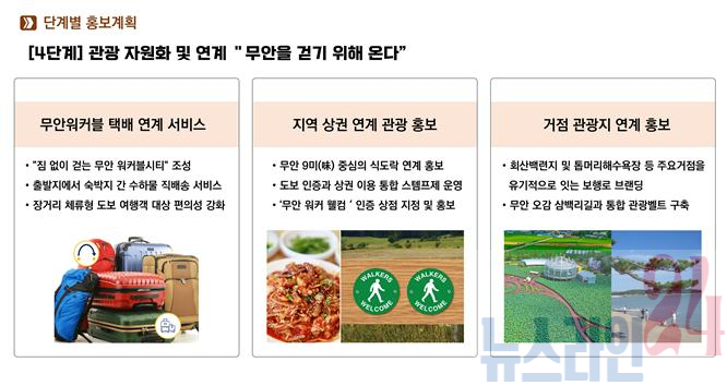 계획에는 9개 읍·면의 특성을 반영한 테마 노선과 군 전역을 연결하는 순환형 보행 네트워크 구축, 관광 거점을 활용한 체류형 보행로 조성 등이 포함됐다. 특히 테마코스길과 광역 노선인 ‘무안 오감 삼백리 길’ 조성 계획이 함께 제시됐다.