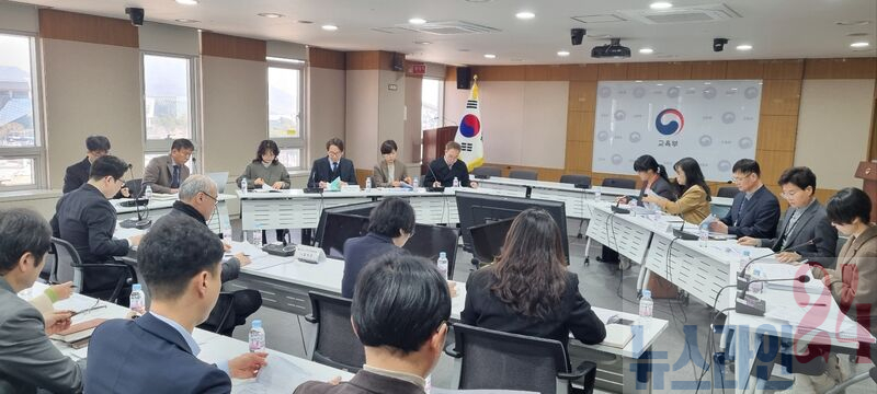 전라남도교육청, 광주시교육청 관계자들이 참여한 가운데 13일 교육부 대회의실에서 ‘교육행정체제 통합 협력회의’가 진행되고 있다.