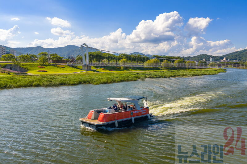 정원드림호가 동천변을 따라 운항하고 있다