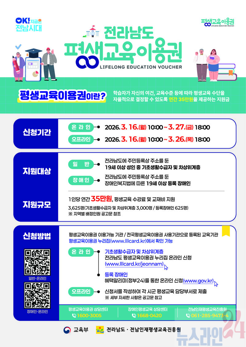 이용권 관련 자세한 문의는 평생교육 이용 상담센터(1600-3005)나 전남인재평생교육진흥원(061-285-9473~4)으로 하면 된다.