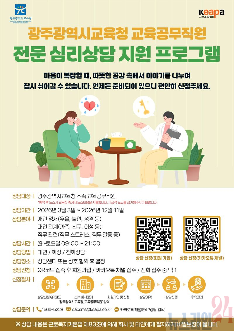 광주시교육청, 교육공무직원 심리정서 안정 프로그램 지원 상담기관 58개소로 확대…맞춤형 상담 제공