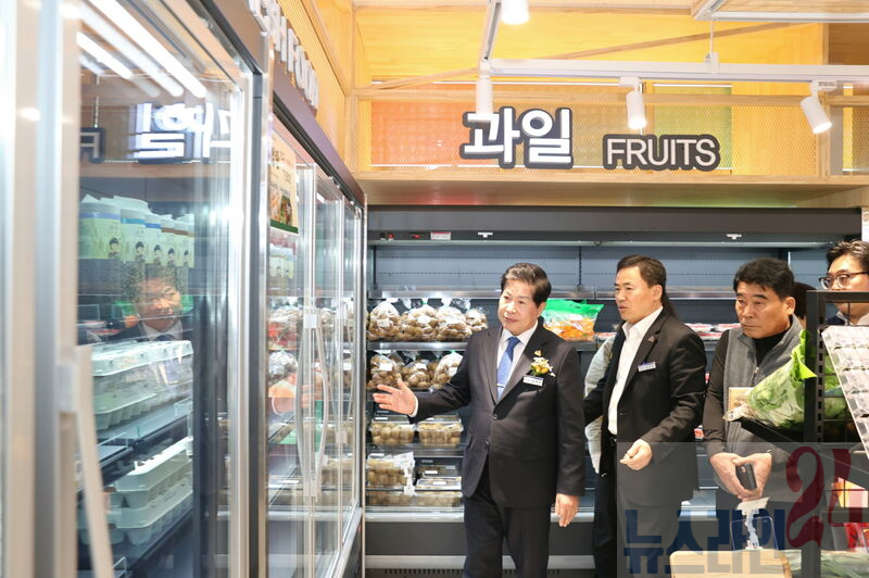 지난 25일 고흥군 로컬푸드 직매장 개장식에서 공영민 고흥군수가 직매장을 둘러보며 운영 상황을 점검하고 있다