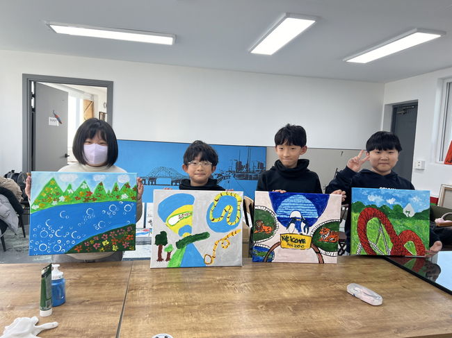 강북구의 미래를 그림으로 표현한 어린이 작가들의 모습