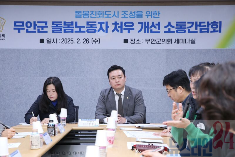 무안군의회 김봉성 의원(행정문화복지위원장)은 26일 군의회 세미나실에서 돌봄노동자의 처우 개선을 위한 소통 간담회를 가졌다.
