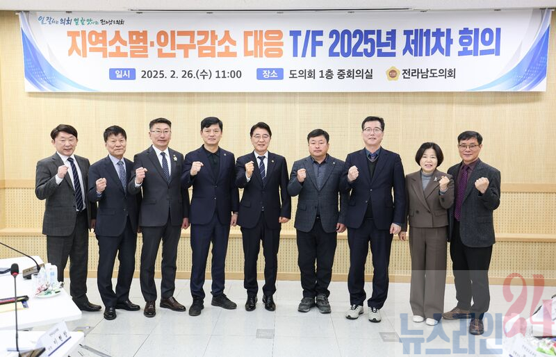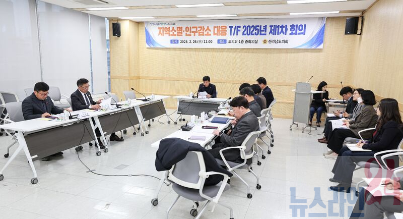 전라남도의회 지역소멸 및 인구감소 대응 T/F(이하 ‘지역소멸 T/F’)는 2월 26일 전라남도의회 중회의실에서 2025년 제1차 회의를 개최하고 본격적인 활동을 시작했다.