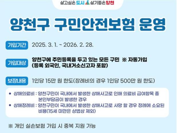 양천구민이면 별도 절차 없이 자동가입...`구민안전보험` 시행