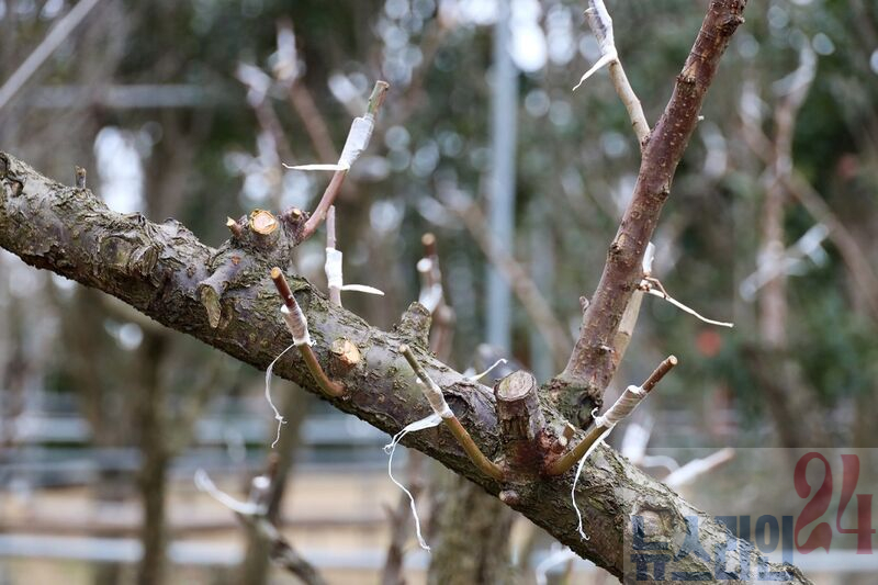 접목은 한 나무의 싹이나 가지(접수)를 뿌리가 있는 나무(대목)에 붙여 성장시키는 기술로, 이를 통해 정원을 홍매화로 가득한 경관으로 조성할 방침이다.
