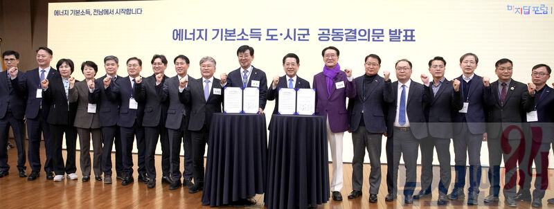행사에서 전남도와 22개 시군은 태양광·풍력 자원을 활용한 재생에너지 발전수익을 모든 도민과 공유하는 '에너지 기본소득 실현 공동결의문'을 발표했습니다.