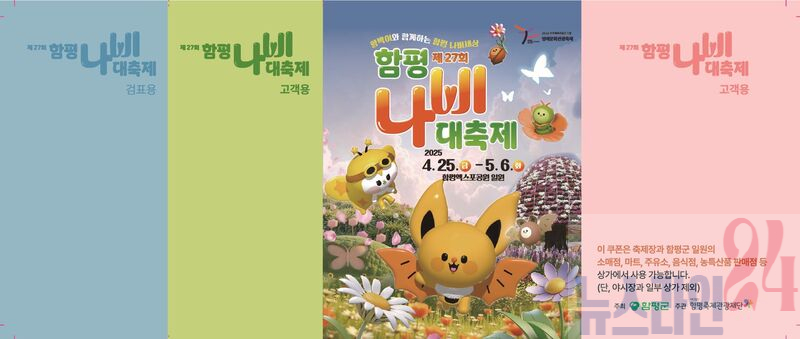 나비대축제 입장권은 4월 24일까지 온라인과 오프라인 모두에서 사전 예매할 수 있다. 온라인 예매는 ‘티켓링크’와 ‘네이버’에서 ‘제27회 함평나비대축제’를 검색해 구매할 수 있으며 사전예매 인증 시 함평사랑상품권을 제공하는 추첨 행사도 진행 중이다.