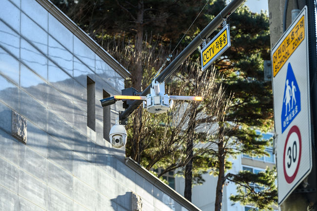 양천구, 차량 진입을 감지해 LED 램프로 표출 중인 `방향주의 알림이`