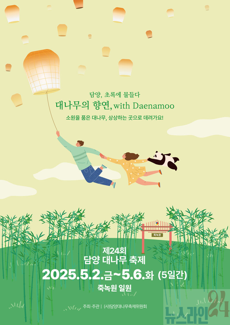 담양군이 올해 제24회 담양 대나무축제를 관광객이 맘껏 연휴를 즐길 수 있도록 5월 2일부터 5월 6일까지 5일간 죽녹원 일원에서 개최한다고 밝혔다.