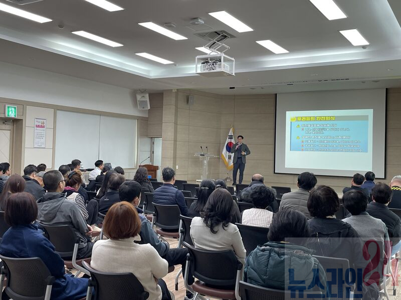 주요 교육 내용은 ▲안전의 중요성 ▲중대재해처벌법 ▲산업재해보상보험법 ▲직무스트레스 예방 ▲유해 위험 작업 사고사례 및 예방에 관한 사항 ▲위험성 평가 등으로 관련법 시행규칙에 따른 내용으로 구성됐다.