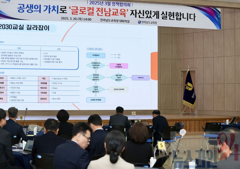 전라남도교육청(교육감 김대중)이 20일 청사 대회의실에서 ‘공생의 가치로 글로컬 전남교육, 자신있게 실현합니다’를 주제로 정책협의회를 개최했다.