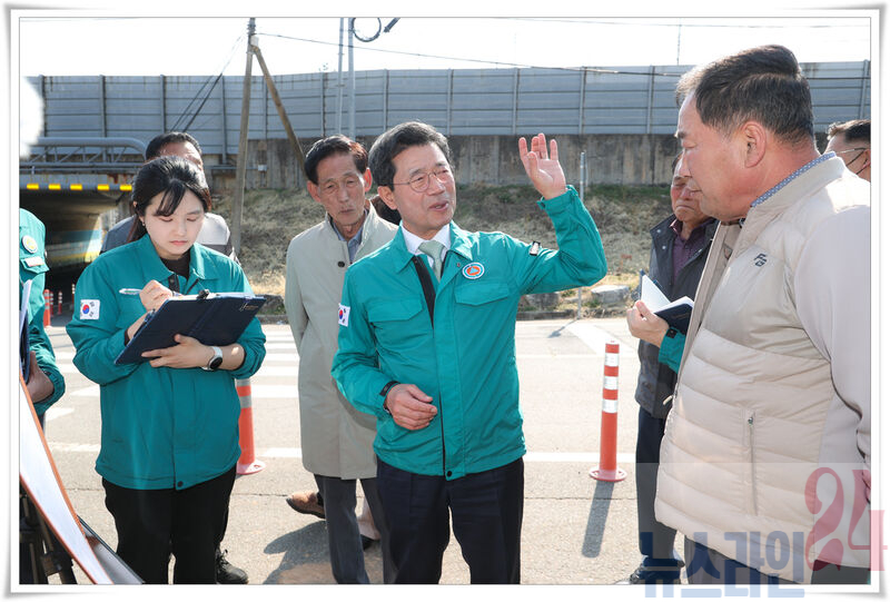 마지막으로 봉강면 가야장례식장 인근 상습침수 도로 정비 건의 현장을 점검했다. 지역주민들은 지방로865호선 도로 중 가야장례식장 인근 굴다리 구간이 우기 시 반복적인 침수로 불편이 지속돼 도로 정비를 건의했다.