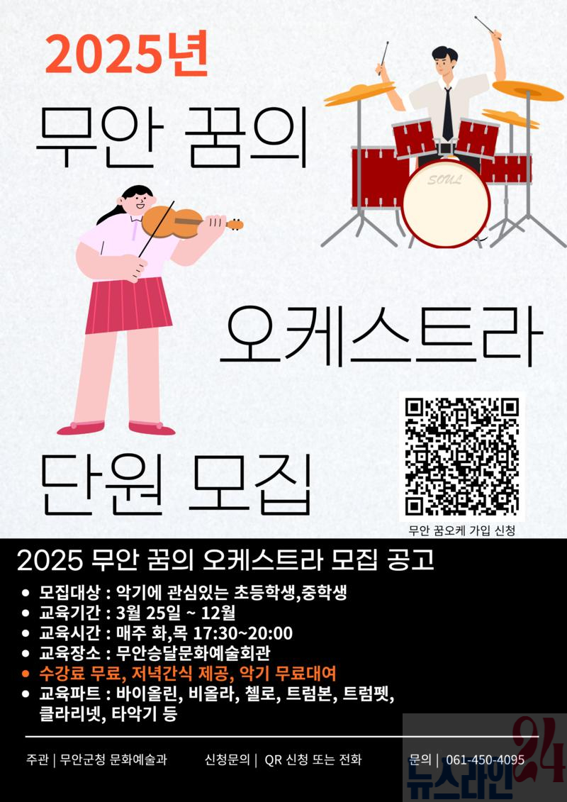 전남 무안군(군수 김산)은 지난 25일 승달문화예술회관에서 ‘2025 무안 꿈의 오케스트라’ 단원, 학부모, 지역아동센터장을 대상으로 오리엔테이션을 열고 본격적인 출발을 알렸다.