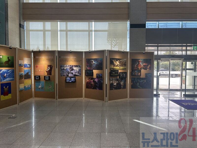 작품 속에는 학생들이 큰고니, 대륙사슴, 산양 등 동물박제 표본을 보고, 만져보는 오감을 통해 느낌을 그림으로 표현했다. 이와함께 AI(인공지능) 기술을 활용하여 다양한 생물들이 여러 직업을 갖게 되는 재미있는 상상을 실제 현실의 미술작품으로 구현해 보는 활동도 함께 진행했다.