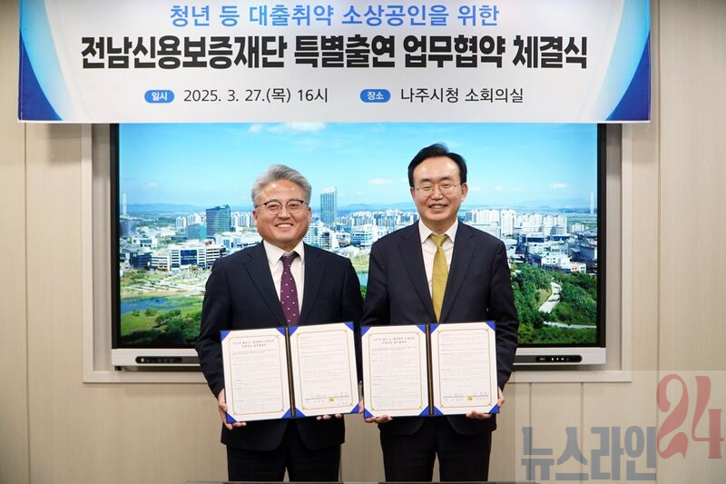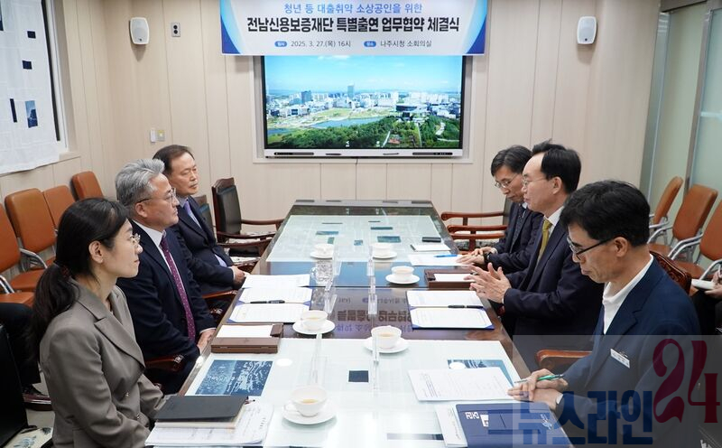 나주시(시장 윤병태)는 최근 시청 소회의실에서 전남신용보증재단(이하 전남신보)와 청년·중저신용·저소득 소상공인의 금융 지원을 위한 특별출연 업무협약을 했다고 1일 밝혔다.