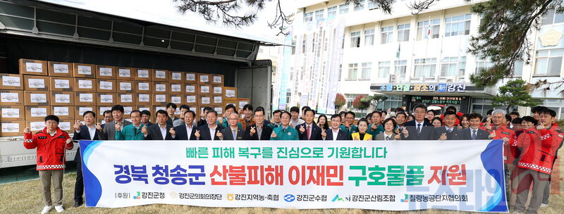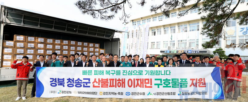강진군이 경북 청송 지역의 대형 산불로 피해를 입은 이재민들을 돕기 위해 자발적인 기부 운동을 전개하고 정성으로 모금된 기부금과 구호물품을 청송군 접수처인 청송국민체육센터 재해구호팀에 직접 전달했다.
