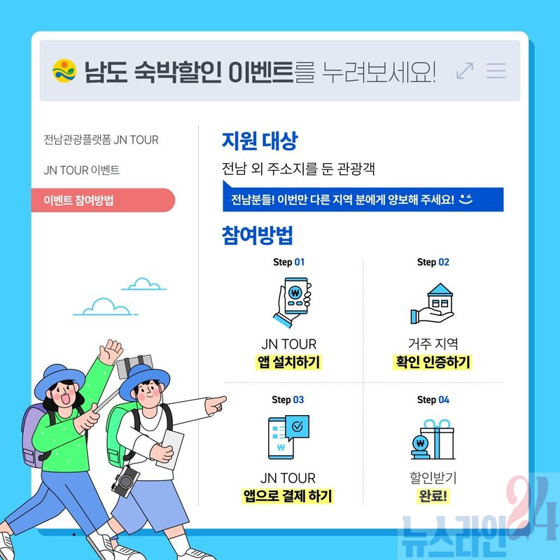 참여를 원하는 관광객은 전남관광플랫폼(JN TOUR)에 회원가입 후 쿠폰을 발급받으면 된다. 발급된 쿠폰은 플랫폼에 등록된 숙박업소에서만 사용 가능하며, 예산 소진 시 조기 마감될 수 있다.