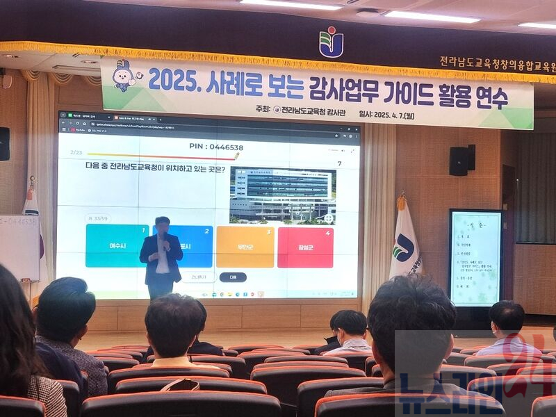 전라남도교육청(교육감 김대중)은 4월 7일 전라남도교육청창의융합교육원에서 ‘2025 사례로 보는 감사업무 가이드’ 활용 연수를 갖고, 현장 중심 사례 공유를 통한 감사 역량 강화를 모색했다.