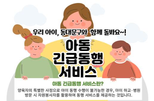 서울 동대문구(구청장 이필형, 이하 ‘구’)가 아동 양육 가정의 부담을 덜기 위해 올해도 ‘아동긴급동행서비스’를 운영한다.