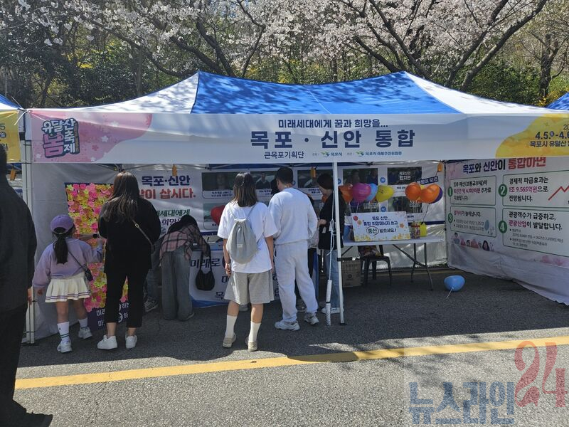 목포시는 지난 유달산 봄축제 기간 목포신안통합추진위원회(위원장 고석규) 위원들과 함께 목포·신안 통합 홍보부스를 운영했다.
