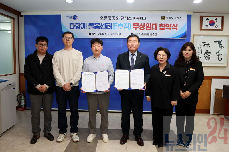 전남 무안군(군수 김산)은 지난 9일 오룡지구 중흥S-클래스 에듀파크 입주자대표회의(회장 이곤환)와‘무안군 다함께돌봄센터 5호점’설치를 위한 무상임대 협약을 체결했다.