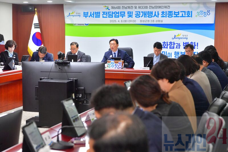 장성군이 양대 체전 준비의 ‘마지막 퍼즐’을 맞췄다. 군은 8일 군청 상황실에서 제64회 전남체전, 제33회 전남장애인체전 준비에 관한 부서별 전담업무 최종보고회를 가졌다.