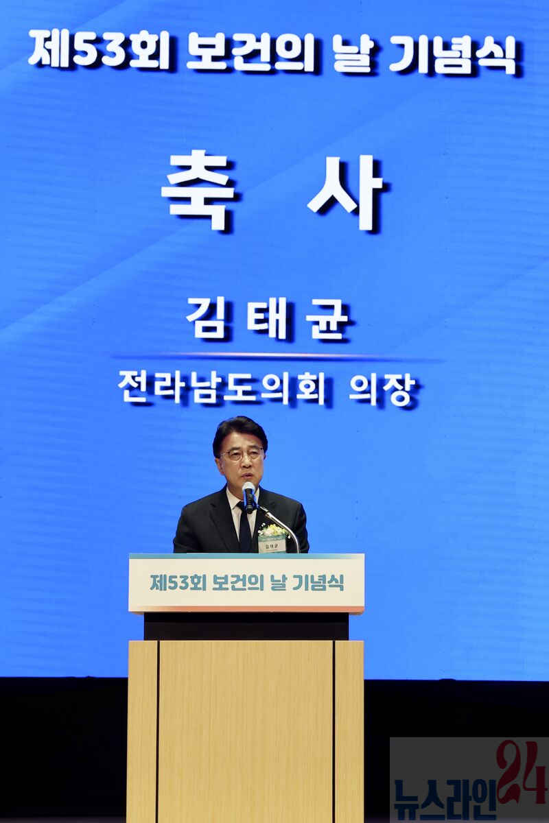 전라남도의회 김태균 의장은 4월 9일 오전 11시 포스코 광양백운아트홀에서 개최된 ‘제53회 보건의 날 기념식’에 참석하여 축하와 함께 “도민의 건강증진에 최선을 다해 달라”고 당부했다.
