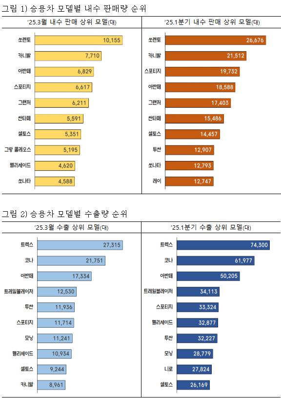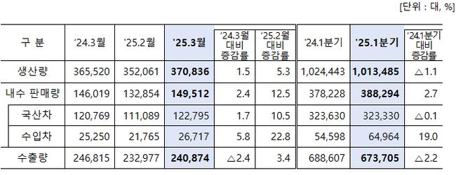 `25년 3월 자동차 생산, 내수, 수출량
