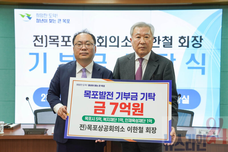 목포시는 4월 14일 시청 상황실에서 이한철 전 목포상공회의소 회장과 7억 원 기부에 대한 약정을 체결했다고 밝혔다.