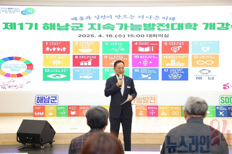 이날 개강식에는 명현관 해남군수와 이재승 전남지속가능발전협의회 상임의장이 참석해 개강을 축하하고 수강생들을 격려했다. 이어진 첫 강의는 광주대학교 김병완 교수가‘지속가능발전과 SDGs 이해’를 주제로 문을 열었다.